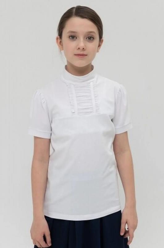 Школьная футболка для девочки в классическом стиле. Мягкая, но хорошо держит форму. В ней комфотно активно двигаться, ничего не будет тянуть. Необычная драпировка из мягкой сетки на кокетке и небольшая сборка рукава добавляют лёгкости в образ. Воротник стойка прилегает аккуратно и не давит. Практичная классика с учётом современных тенденций нужная вещь в школьном гардеробе и не только!