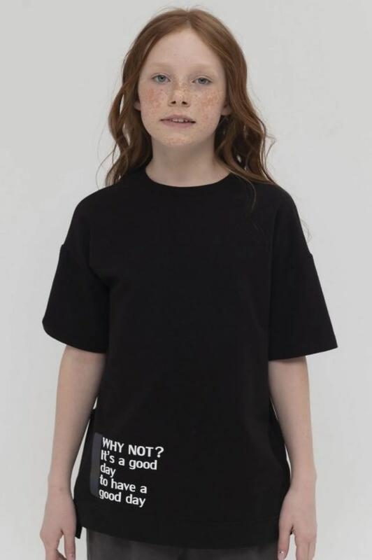 Футболка для девочки в школу из приятного к телу материала. Он не тянется, легко стирается и подходит для ежедневной носки. Текстовый принт Почему нет? Сегодня хороший день, чтобы у тебя был хороший день (дословный перевод) создаст положительный настрой.А серая светоотражающая полоска становится разноцветной при фотовспышке. Необычный крой, принты, лаконичный дизайн то, что оценят современные дети.