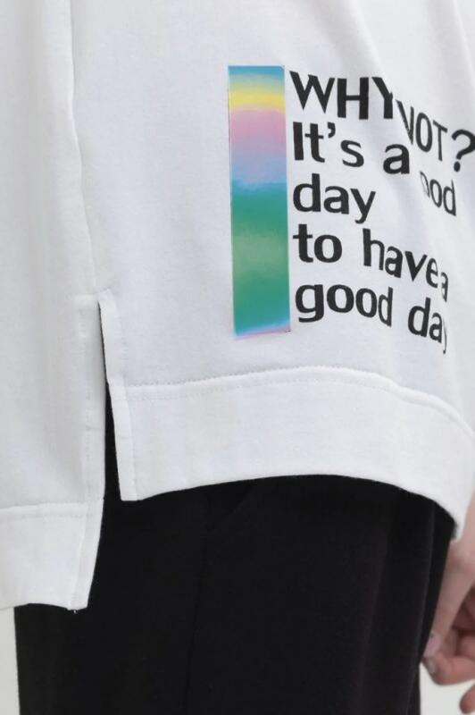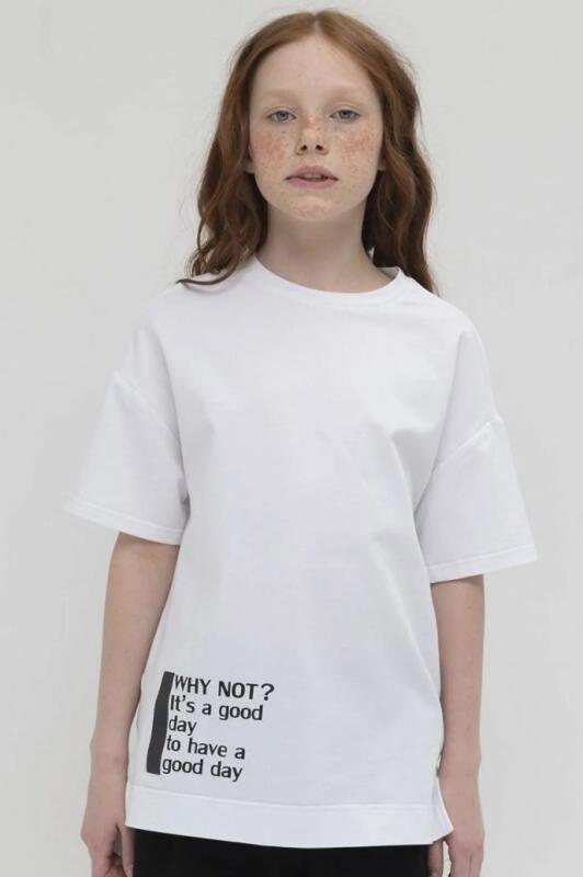 Футболка для девочки в школу из приятного к телу материала. Он не тянется, легко стирается и подходит для ежедневной носки. Текстовый принт Почему нет? Сегодня хороший день, чтобы у тебя был хороший день (дословный перевод) создаст положительный настрой.А серая светоотражающая полоска становится разноцветной при фотовспышке. Необычный крой, принты, лаконичный дизайн то, что оценят современные дети.