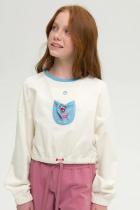 Стильная детская короткая толстовка для девочки оверсайз. Модная укороченная кофта с округлым вырезом покорит сердца девочек современным дизайном, невероятно удобным кроем и уникальным внешним видом. Джемпер для девочки из тонкого хлопкового футера длиной выше талии, силуэт прямой, очень расслабленный объем изделия, сильно спущенное плечо. Модель без воротника, с притачной бейкой из рибаны. Длинный широкий рукав по низу собирается на резинку. Низ изделия собирается на резинку и дополнительно декорирован люверсами и продернутым эластичным шнуром. На передней половинке изделия кокетка, из под которой выходят 2 накладных прямоугольных кармана с клапанами. Кроп топ толстовка для подростков свободного кроя впишется в детский гардероб и удивит своей комбинаторностью, с ней сочетаются любые подростковые вещи. Легко создать стильный образ с эффектом многослойности наряда. Можно надевать на длинную майку, платье, сочетать с узкими и широкими брюками. Короткая толстовка для подростка подойдет для прогулок весной и как