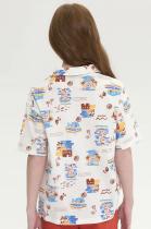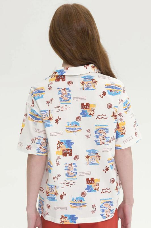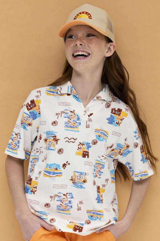 Футболка- поло для девочек - актуальный тренд этого сезона. Выполнена из хлопкового трикотажа не вызывает аллергии и отлично пропускает воздух. Модель свободного покроя со спущенным плечом, воротником - апаш с расходящейся планкой хорошо сочетается с шортами, джинсами. Подойдет для отдыха, путешествий, пляжа, прогулок. Футболка с акцентным курортным принтом создаст настроение отпуска на море.