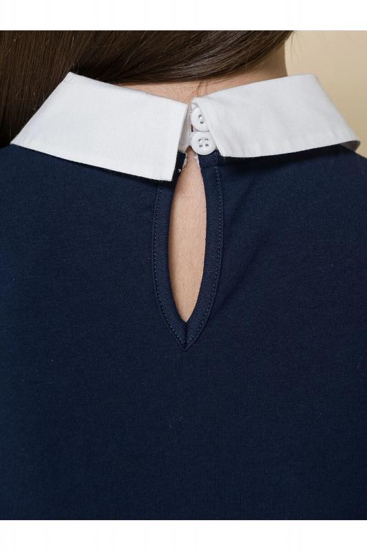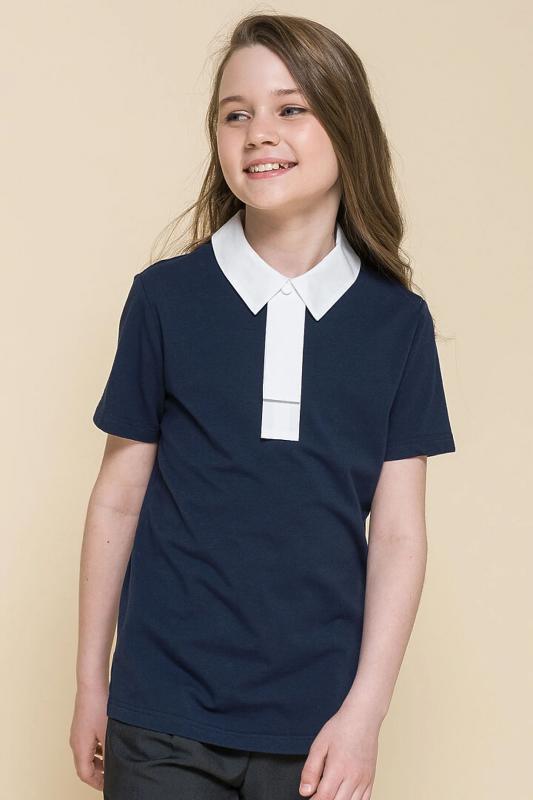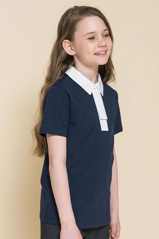 Описание: Школьная футболка прилегающего силуэта для девочки. В составе ткани преобладает хлопок — изделие мягкое, дышащее и приятное на ощупь. Эластан помогает сохранять форму и после многочисленных стирок. В футболке комфортно в течение всего дня, ничего не давит, не колет, не сковывает движения. Блузку украшают белый воротничок и декоративно сложенный галстук из швейной ткани с пуговицей в тон — изюминка этой модели. Он позволяет создавать элегантные образы с пиджаком, жилетом, сарафаном. Модель застёгивается сзади на пуговицу с петлёй из резинки — ребёнку удобно её застёгивать и расстёгивать. Универсальный вариант школьной одежды — подойдёт как для повседневной носки, так и для более торжественного случая. Состав: 93%хлопок 7%эластан, вставка: 60%хлопок 40%полиэстер"
