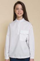 Школьная блузка для девочки. В составе ткани преобладает хлопок — изделие мягкое, дышащее и комфортное. Полиэстер помогает не терять форму и отличный внешний вид. Объемный крой, спущенное плечо – настоящий трендовый оверсайз. Модель с воротником-стойкой застёгивается на пуговицы по переду — ребёнку удобно надевать и снимать блузку через голову. По переду накладной карман с клапаном, который украшает эластичный световозвращающий шнур со стоппером — модно и актуально. В манжетах рукавов широкая внутренняя резинка — не давит и не впивается. По низу внутренний эластичный световозвращающий шнур со стоппером — можно регулировать объём и менять силуэт. На девочках с разными фигурами будет смотреться идеально. Удобно в течение всего дня. Отличный вариант блузки для школы. Идеально белый цвет без желтого и серого оттенка.