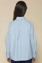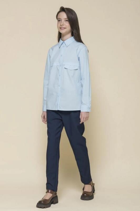 Школьная блузка прямого силуэта для девочки. Преобладающий в составе ткани хлопок делает эту модель мягкой, дышащей и комфортной для ребёнка. Благодаря полиэстеру изделие сохраняет форму и превосходный внешний вид. На спинке кокетка с защипом - свобода движения, комфорт в течение дня. По переду под кокеткой имитация кармана в виде декоративного клапана – актуально и стильно. Воротник украшают декоративные пуговицы — оригинально. Практичная и универсальная модель благодаря лаконичному дизайну великолепно сочетается с различными брюками и юбками. Отличный вариант детской блузки для школы.