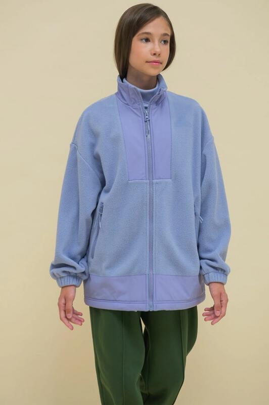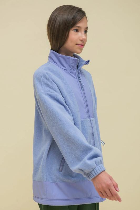 Толстовка детская для девочки. Куртка модного оверсайз-силуэта со спущенным плечом подарит ребёнку комфорт и свободу движения. Классическая застёжка на центральную молнию спереди, вверху молнии ограничитель для безопаного застёгивания. Толстовка на замке выполнена из флиса. Воротник и вставки по горловине и низу изделия — из гладкой курточной ткани. Стильно и практично. Сочетание материалов разных фактур — модный тренд сезона. А детали из курточной ткани менее маркие при частых прикосновениях к ним. По низу изделия предусмотрена регулировка объёма эластичным шнуром со стопперами. Толстовка с воротником-стойкой, который защищает шею от холода и ветра. В манжетах рукавов комфортная широкая резинка, благодаря чему рукава имеют актуальную объёмную форму. По бокам прорезные карманы на молниях — удобно пользоваться. Модель однотонная, без принта. Изделие неприхотливо в уходе. Одежда из флиса тёплая, лёгкая, мягкая, просто стирается и быстро сохнет, не выгорает и не скатывается, сохраняет первозданную форму в течен