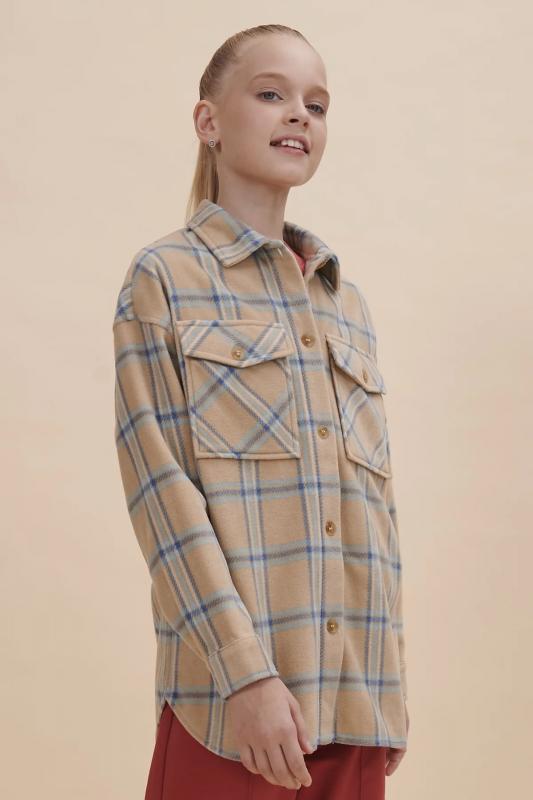 Флисовая рубашка для девочки. Объёмная рубашка с классическим отложным воротником и спущенным плечом подарит ребёнку комфорт и не будет стеснять его движений. Клетчатая рубашка оверсайз — актуальный модный тренд. Модель застёгивается на пуговицы по переду. По низу рукавов манжеты на пуговицах. По переду слева накладные карманы с клапанами для мелочей. Линия низа фигурная, спинка слегка длиннее переда. Изделие лаконичного дизайна, без принта. Рубашка неприхотлива в уходе. Флис тёплый, мягкий, лёгкий, просто стирается и быстро сохнет, не выгорает и не скатывается, одежда из него надолго сохраняет прекрасную форму. Рубашка оверсайз в клетку выполнена в трендовых базовых цветех: черном, бежевом, белом. Она легко сочетается с различными брюками, джинсами. Размерная линейка: 1 (86): 2 (92): 3 (98): 4 (104): 5 (110): 6 (116): 7 (122): 8 (128): 9 (134): 10 (140): 11 (146). Идеальная рубашка в клетку для детей дошкольного и младшего школьного возраста, а также подростка. Рубашка утеплённая подходит для круглогодичной
