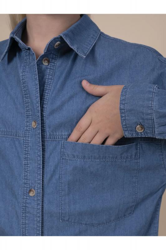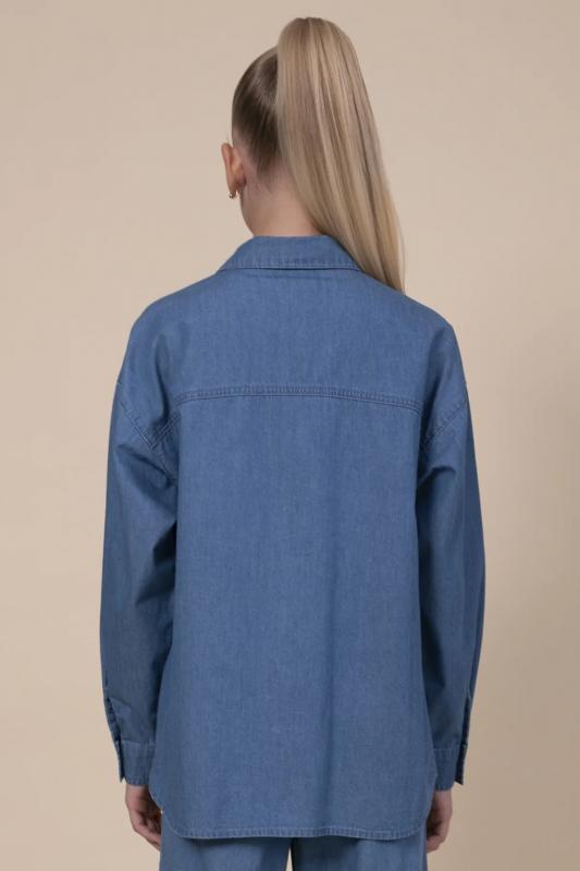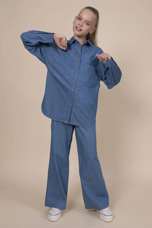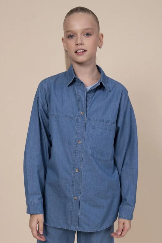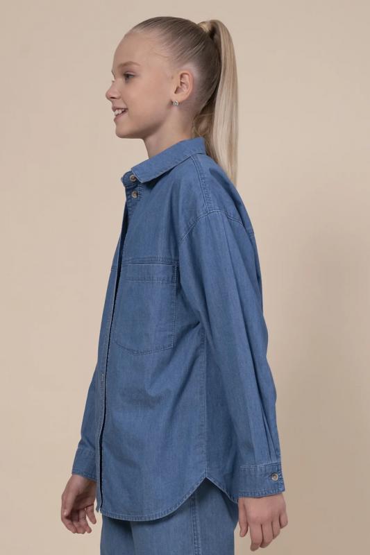 Джинсовая рубашка для девочки. Свободная рубашка прямого кроя с классическим отложным воротником и спущенным плечом подарит ребёнку комфорт и не будет стеснять его движений. Модель застёгивается на пуговицы по переду. По низу рукавов манжеты на пуговицах. Спереди слева удобный накладной карман для мелочей. Фигурная линия низа, кокетки по переду и спинке придают изысканности. Изделие лаконичного дизайна, без принта. Модель неприхотлива в уходе. В составе ткани 100% высококачественного хлопка — рубашка мягкая и воздухопроницаемая. Изделие выполнено в джинсовом синем цвете с актуальным эффектом мягкой варки garment wash. Рубашка легко сочетается с различными брюками, джинсами, легинсами. Размерная линейка: 3 (98): 4 (104): 5 (110): 6 (116): 7 (122): 8 (128): 9 (134): 10 (140): 11 (146). Идеальная рубашка на девочку дошкольного и младшего школьного возраста, а также девочку-подростка. Рубашка джинсовая подходит для круглогодичной носки: летом, осенью, зимой, весной и демисезон. Её можно носить в детский сад, на