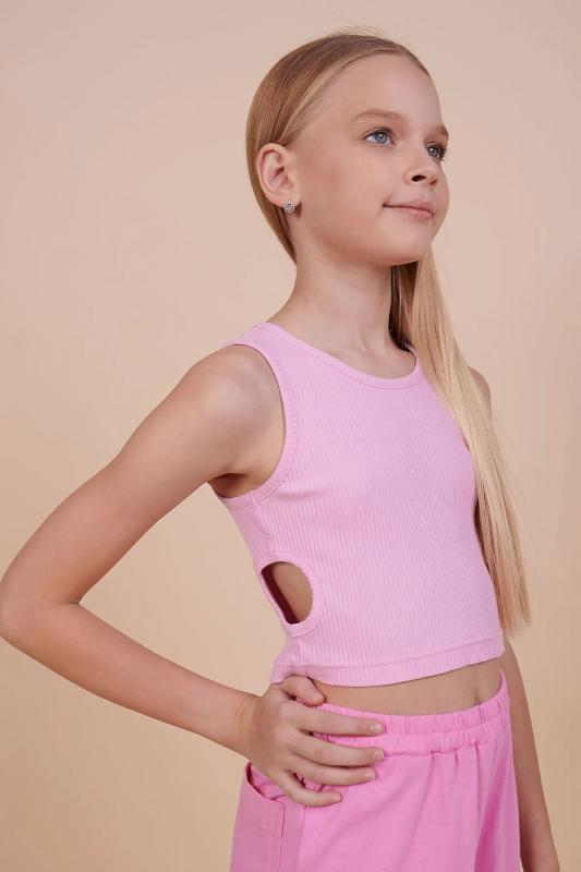 Выбирайте нужный размер по таблице размеров на фото. Цвет товара на экране вашего устройства может отличаться от цвета изделия вживую. Кроп-топ из модной ткани в рубчик для девочки. Преобладающие в составе ткани хлопок и вискоза делают эту модель мягкой, дышащей и очень комфортной для ребёнка. Благодаря эластану изделие сохраняет форму. По бокам небольшие круглые вырезы — один из актуальных летних трендов. Топ лаконичного дизайна прекрасно сочетается с различными шортами и юбками. Отличный выбор для летнего отдыха! Модель представлена в универсальных цветах – белый, голубой, желтый, розовый, лазурный и яблочный.