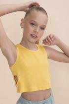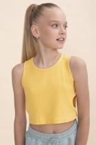 Выбирайте нужный размер по таблице размеров на фото. Цвет товара на экране вашего устройства может отличаться от цвета изделия вживую. Кроп-топ из модной ткани в рубчик для девочки. Преобладающие в составе ткани хлопок и вискоза делают эту модель мягкой, дышащей и очень комфортной для ребёнка. Благодаря эластану изделие сохраняет форму. По бокам небольшие круглые вырезы — один из актуальных летних трендов. Топ лаконичного дизайна прекрасно сочетается с различными шортами и юбками. Отличный выбор для летнего отдыха! Модель представлена в универсальных цветах – белый, голубой, желтый, розовый, лазурный и яблочный.