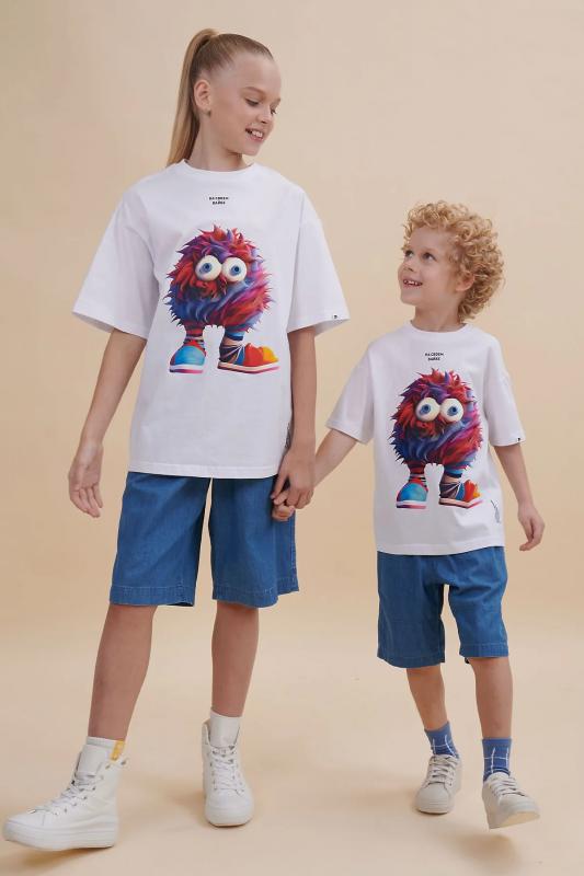 . Футболка оверсайз белая универсальна, подходит и для девочек, и для мальчиков. Как для малышей дошко