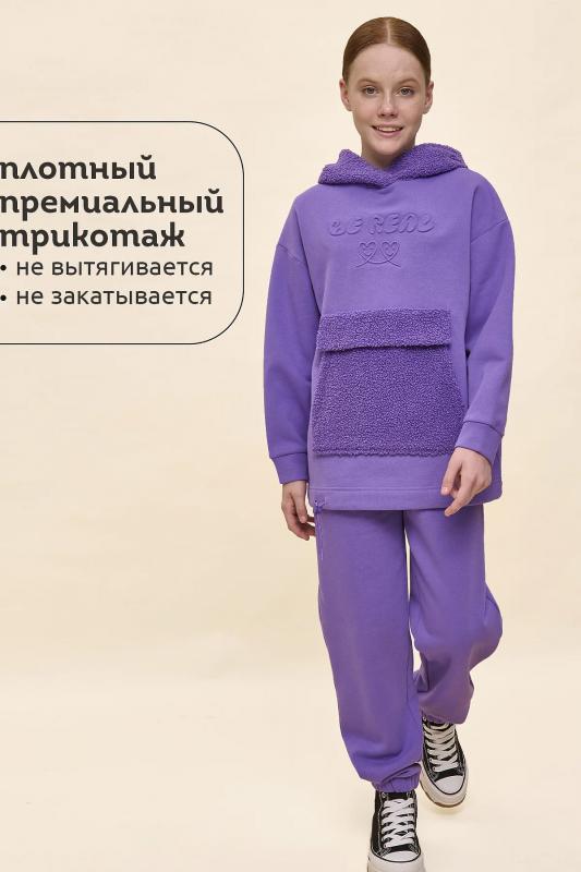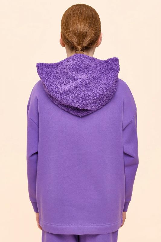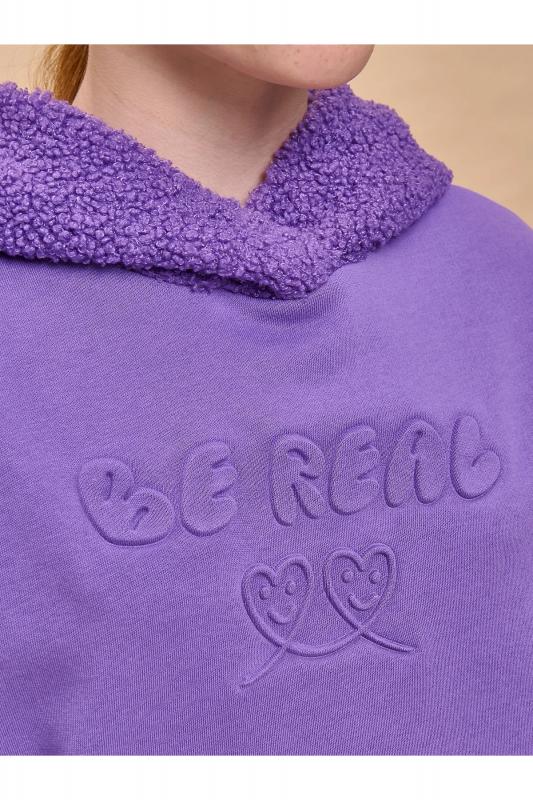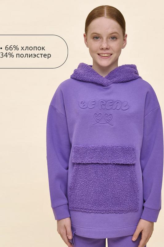 Худи детское для девочки актуального оверсайз-силуэта со спущенным плечом. Трендовое сочетание разных фактур — футера с начёсом и искусственного меха — поможет создать стильный и одновременно уютный образ. Худи с капюшоном из искусственного меха с подкладкой из мягкого хлопка может заменить ветровку. Большой и удобный накладной карман по переду также выполнен из искусственного меха с приятной на ощупь фактурой барашка. По низу утяжка с пластиковым стоппером — можно регулировать ширину и посадку худи. Модель неприхотлива в уходе. Оверсайз худи выполнено из ткани с высоким содержанием хлопка — джемпер мягкий, воздухопроницаемый и гипоаллергенный. Полиэстер помогает сохранить цвет и первоначальный внешний вид надолго. Модель украшает модный пресс-принт (изображение в тон изделия выдавлено по специальной технологии), изображающий два милых улыбающихся сердечка, надпись переводится: «будь реальным-настоящим». Изделие выполнено в трендовой, но универсальной расцветке, его легко комбинировать с любыми брюками, джин