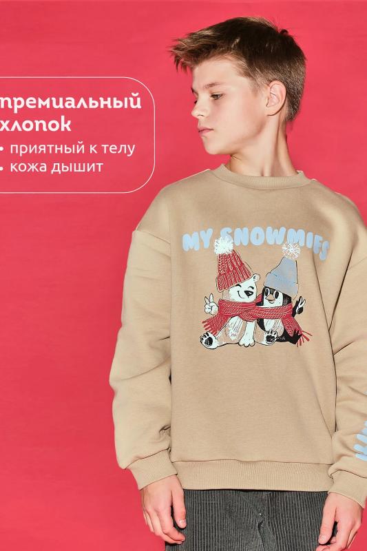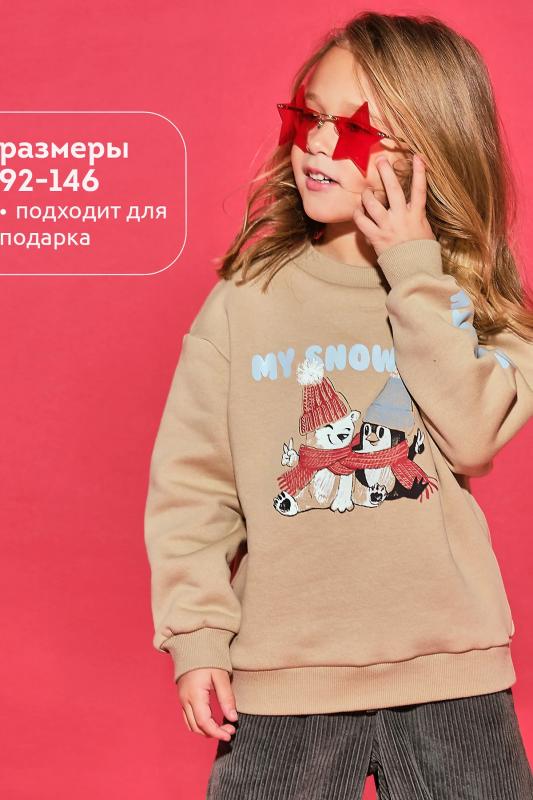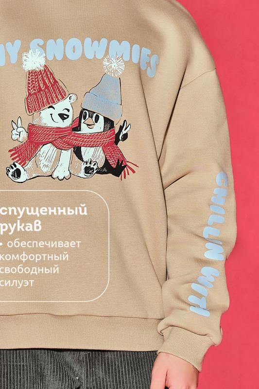 Свитшот детский с начесом. Свободная толстовка со спущенным плечом и углубленной проймой подарит ребёнку комфорт и стнет стильным дополнением гардероба. Свитшот для подростков девочек средней длины — актуальный модный тренд. Манжеты, отделка горловины и низа изделия выполнены из эластичной рибаны (ткани в рубчик). Она не растягивается, отлично сохраняет форму, при этом ребёнку удобно надевать и снимать свитшот. Модель неприхотлива в уходе. Свитшот с рисунком по переду и рукаву выполнен из футера с начёсом. Принты мягкие и стойкие, без проблем переносят частые стирки. В составе ткани преобладает высококачественый хлопок — толстовка приятна на ощупь и прекрасно пропускает воздух. Полиэстер помогает сохранить цвет и первозданный внешний вид надолго. Свитшот для мальчика выполнен в в универсальных цветах, которые легко сочетать с любыми брюками, джинсами. Оверсайз-свитшот подходит как для маленьких детей, так и для подростков. Джемпер идеален для детского сада, прогулок, активного отдыха, дома. Свитшот с принтом