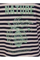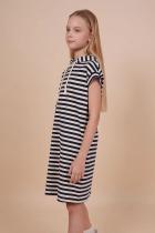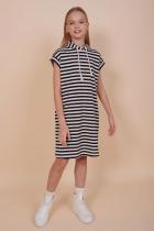 Детское платье худи в полоску для девочки. Платье в спортивном стиле А-силуэта подойдёт для любого типа фигуры. Это идеальный вариант для летнего отдыха — благодаря капюшону нет необходимости в панаме, голову ребёнка не напечёт солнцем. Капюшон двухшовный, красиво и анатомически правильно садится по голове. Есть возможность регулировки капюшона шнуром. Платье-тельняшка — супертренд сезона! Платье умеренного объёма со спущенным плечом подарит ребёнку комфорт и свободу движения. Проймы с широкими притачными манжетами, они отлично держат форму, платье выглядит аккуратно и стильно. В боковых швах имеются карманы — удобно пользоваться. Платье в полоску (полоска вытканная, не принт) украшено красивым принтом в ботаническом стиле по спинке. На принте изображены какао-бобы. Надписи переводятся: "