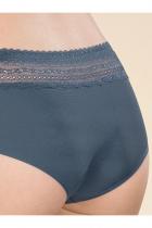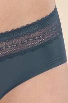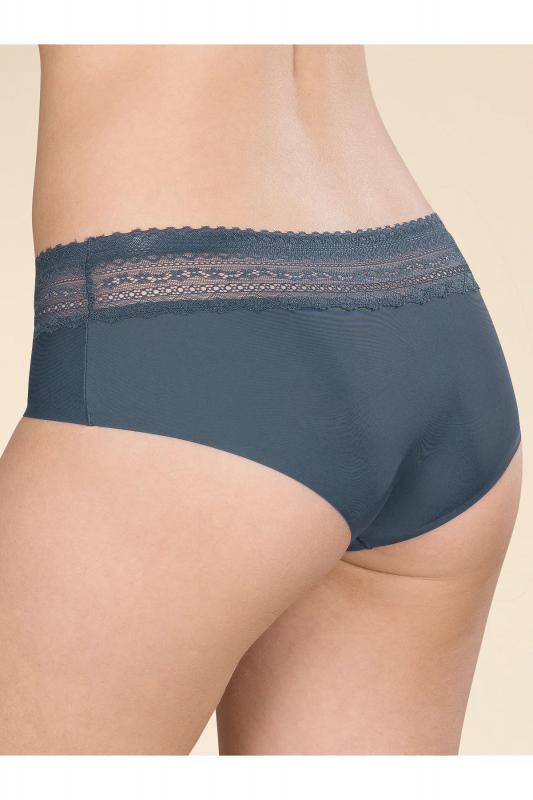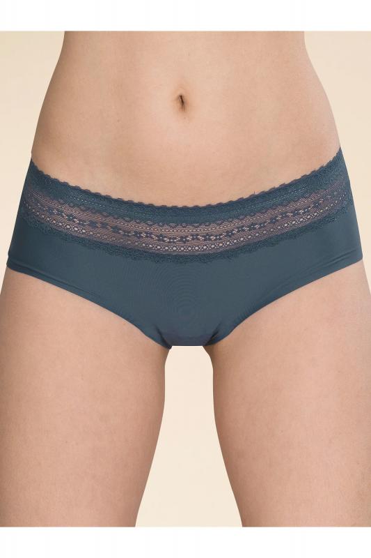 Женские трусы-шорты с низкой посадкой. Изготовлены по бесшовной технологии с минимум швов. Кромки по ноге и по талии подогнуты и приклеены, хлопковая приклеенная ластовица. Нежное геометричное кружево по линии талии высотой 5 см – не передавливает тело и не натирает кожу. Модель оценят те, кто ищет незаметное и невесомое белье на каждый день или особого случая.
