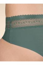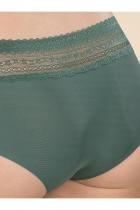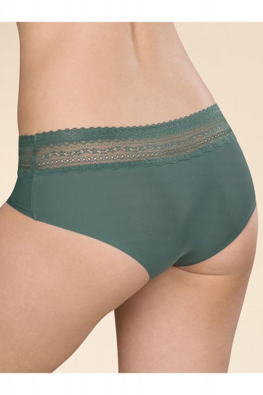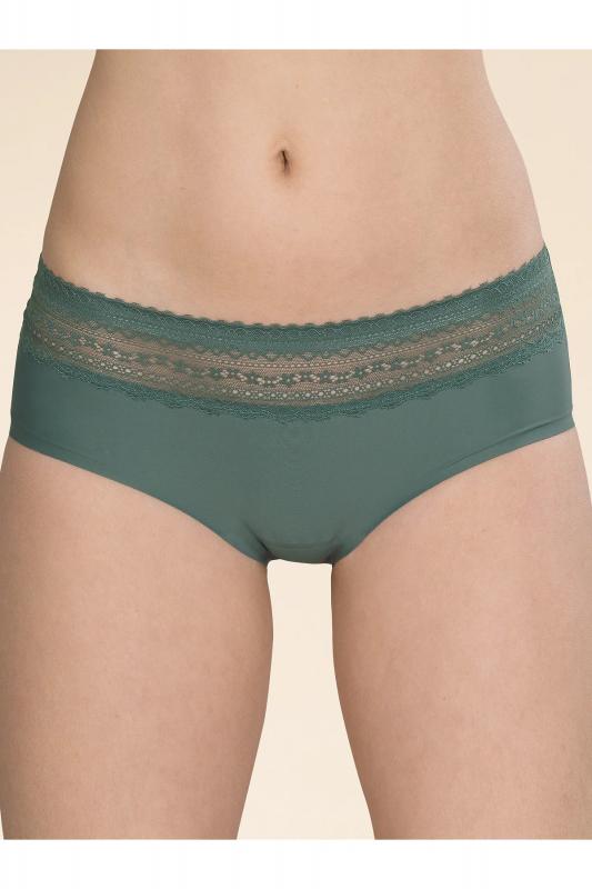 Женские трусы-шорты с низкой посадкой. Изготовлены по бесшовной технологии с минимум швов. Кромки по ноге и по талии подогнуты и приклеены, хлопковая приклеенная ластовица. Нежное геометричное кружево по линии талии высотой 5 см – не передавливает тело и не натирает кожу. Модель оценят те, кто ищет незаметное и невесомое белье на каждый день или особого случая.
