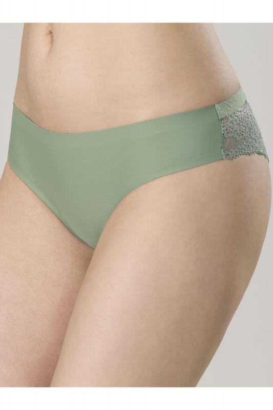Женские трусы-танга с низкой посадкой. Изготовлены по бесшовной технологии с минимум швов. Кромки по ноге и по талии подогнуты и приклеены, хлопковая приклеенная ластовица. Нежное цветочное кружево придает модели утонченный вид. Модель оценят те, кто ищет незаметное и невесомое белье на каждый день или особого случая.