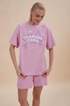 . Принт эластичный и мягкий, отлично переносит частые стирки. В составе ткани изделия преобладает высококачественный хлопок – пижама мягкая и отлично пропускает воздух, позволяя коже дышать. Шорты свободного кроя, средней длины – для удобства и комфорта. Шортики женские на широкой эластичной резинке – она не давит и не перекручивается. В линейке представлены следующие размеры: XS (42), S (44), M (46), L (48), XL (50). Женский пижамный костюм подходит как женщинам, так и девушкам, девочкам-подросткам. Модель представлена в двух трендовых цветах: голубом и розовом. Комплект женский дома