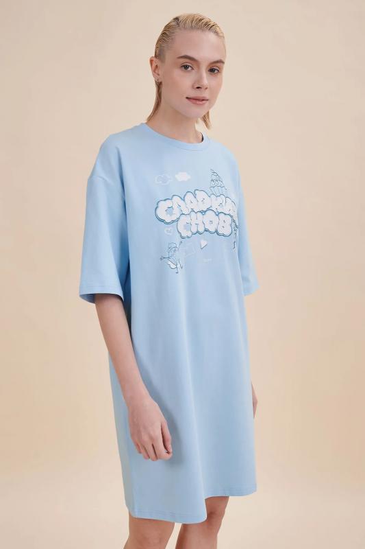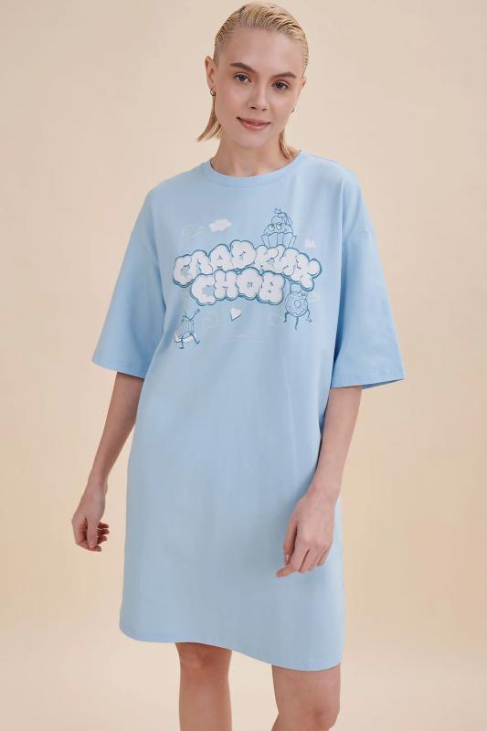 . Принт эластичный и прочный, отлично переносит многочисленные стирки. В линейке представлены следующие размеры: XS (42), S (44), M (46), L (48), XL (50). Просторное платье в спортивном стиле подходит как женщинам, так и девушкам, девочкам-подросткам. Модель представлена в двух трендовых цветах: голубом и розовом. Свободное платье оверсайз идеально для носки дома, комфортного сна, пижамной вечеринки. Платье-майка подходит для повседневного летнего гардероба, прогу