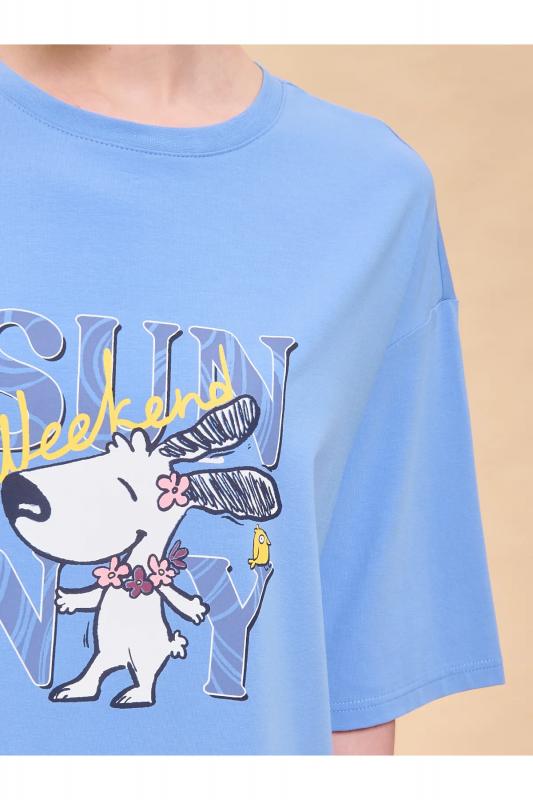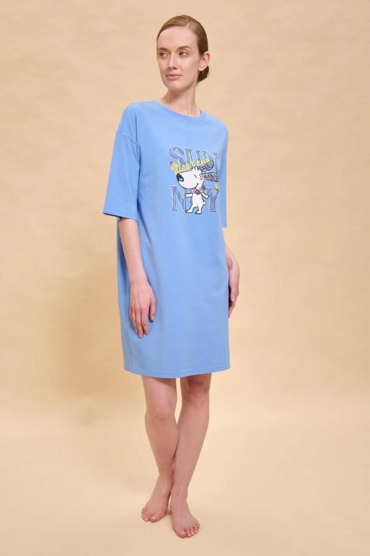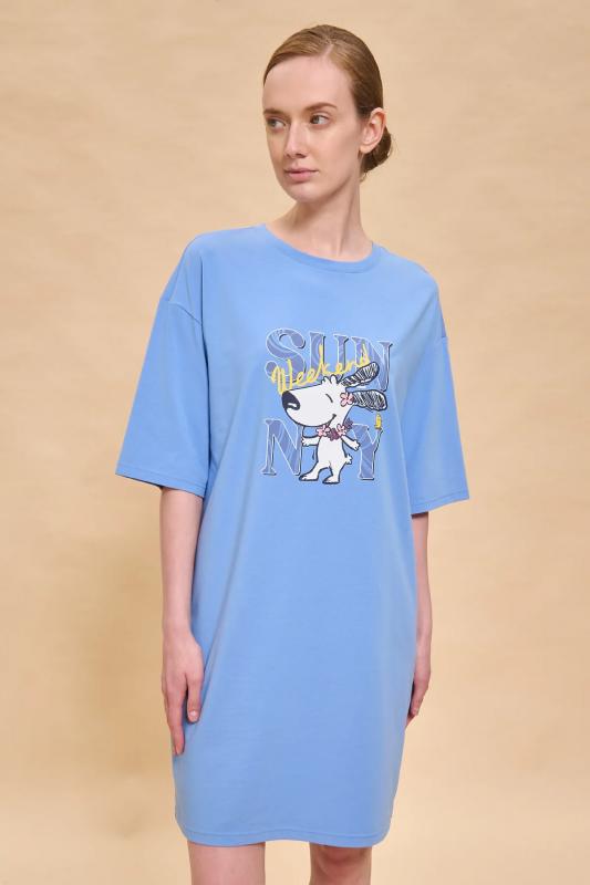 Платье футболка женское оверсайз. Трикотажное платье оверсайз прямого кроя с коротким широким рукавом. Плечо спущено — модель максимально комфортная. Комфортное платье-футболка с принтом – базовый элемент женского гардероба. Повседневное платье свободного кроя подойдет для любой фигуры. В составе ткани изделия преобладает высококачественный хлопок – платье мягкое и отлично пропускает воздух, позволяя коже дышать. Эластан помогает модели надолго сохранить первоначальную форму. Модель украшена милым, «няшным» принтом в виде счастливой собачки, надпись переводится: «солнечный выходной». Пижамный костюм неприхотлив в уходе. Принт эластичный и мягкий, великолепно переносит многочисленные стирки. Просторное платье в спортивном стиле подходит как женщинам, так и девушкам, девочкам-подросткам. Свободное платье оверсайз идеально для носки дома, комфортного сна, пижамной вечеринки, отдыха. Платье майка подходит для повседневного летнего гардероба, прогулок, отдыха, пляжа. А также модель удобна для беременных. Помните