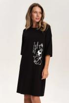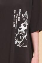 Платье футболка женское оверсайз. Трикотажное платье оверсайз прямого кроя с коротким широким рукавом. Плечо спущено — модель максимально комфортная. Однотонное платье-футболка с принтом – базовый элемент женского гардероба. Повседневное платье свободного кроя подойдет для любой фигуры. В составе ткани изделия преобладает высококачественный хлопок – платье мягкое и отлично пропускает воздух, позволяя коже дышать. Эластан помогает модели надолго сохранить первоначальную форму. Модель украшена милым, «няшным» принтом в виде забавных зверушек с позитивным настроением, надпись переводится: «не позволяй глупым вещам воровать твоё счастье» — почувствуйте себя беззаботной девчонкой. В принте есть модный оттенок — серебристый металлик. Принт эластичный и мягкий, великолепно переносит многочисленные стирки. Просторное платье в спортивном стиле подходит как женщинам, так и девушкам, девочкам-подросткам. Свободное платье оверсайз идеально для носки дома, комфортного сна, пижамной вечеринки, отдыха. Платье майка подходи