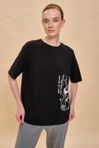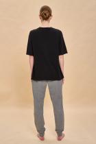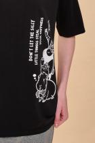Костюм пижамный женский. В составе ткани преобладает высококачественный хлопок — комплект для сна мягкий, гипоаллергенный и хорошо пропускает воздух. В хлопковой пижаме вам будет комфортно и уютно во время сна. Эластан помогает модели надолго сохранить первоначальную форму. Свободная футболка со спущенным плечом и широкими рукавами, брюки умеренного объёма — в пижаме очень удобно спать. В поясе брюк мягкая и широкая резинка — не перекручивается и не давит. Отделка горловины из эластичной рибаны — она не растягивается, пижаму удобно надевать и снимать. Хлопковая пижама украшена милым, «няшным» принтом в виде забавных зверушек с позитивным настроением, надпись переводится: «не позволяй глупым вещам воровать твоё счастье» — почувствуйте себя беззаботной девчонкой. В принте есть модный оттенок — серебристый металлик. Пижамный костюм неприхотлив в уходе. Принт эластичный и мягкий, легко переносит частые стирки. Пижама женская с брюками подходит как для сна, так и просто для отдыха дома. Помните о правильном уходе