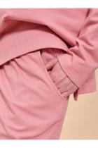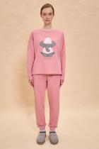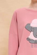 Теплая пижама женская. В составе ткани (футер с начёсом) преобладает высококачественный хлопок — комплект для сна мягкий, гипоаллергенный и хорошо пропускает воздух. В хлопковой пижаме вам будет тепло и уютно во время сна. Эластан помогает модели надолго сохранить первоначальную форму. Джемпер и брюки умеренного объёма, плечо джемпера спущено, спинка чуть длиннее переда— в пижаме очень удобно спать. В поясе брюк мягкая и широкая резинка — не перекручивается и не давит. Отделка горловины из эластичной рибаны — она не растягивается, пижаму удобно надевать и снимать. Хлопковая пижама украшена милым, «няшным» принтом в виде медитирующего слоника, надписи переводятся: «никакой спешки», «не беспокойтесь» — почувствуйте себя уютно и беззаботно. Шляпка и майка слоника — аппликация из тактильного приятного бербер-флиса с нежной фактурой барашка. Пижамный костюм неприхотлив в уходе. Принт эластичный и мягкий, хорошо переносит частые стирки. Пижама женская с брюками подходит как для сна, так и просто для отдыха дома. П