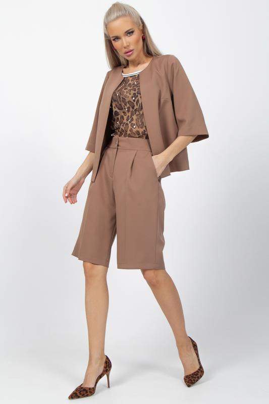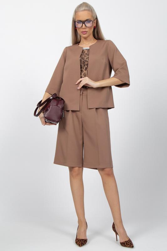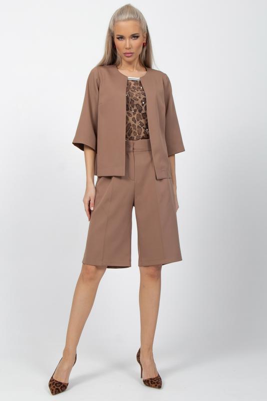 Шикарный универсальный костюм с бермудами. Этот премиум комплект подчеркнет ваш стиль и обеспечит максимальный комфорт. Ткань почти не мнется, имеет дорогой внешний вид и приятную фактуру. Каждый элемент костюма может носиться отдельно в сочетании с другими элементами гардероба, создавая утонченные и модные образы. Застежка бермудов гульфик по переду, по спинке талии резинка. Длины: ( жакет 44-52р- 57 см, бермуды 44р- 51 см,46-48р-53 см,50-52р-54 см). Размер изделия на модели: 44 Рост модели: 172 см Параметры модели: 88-63-96