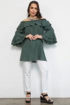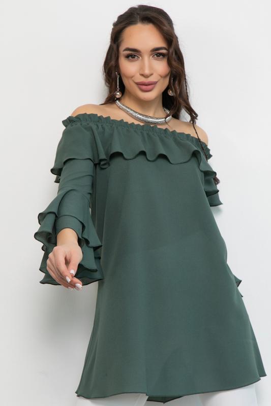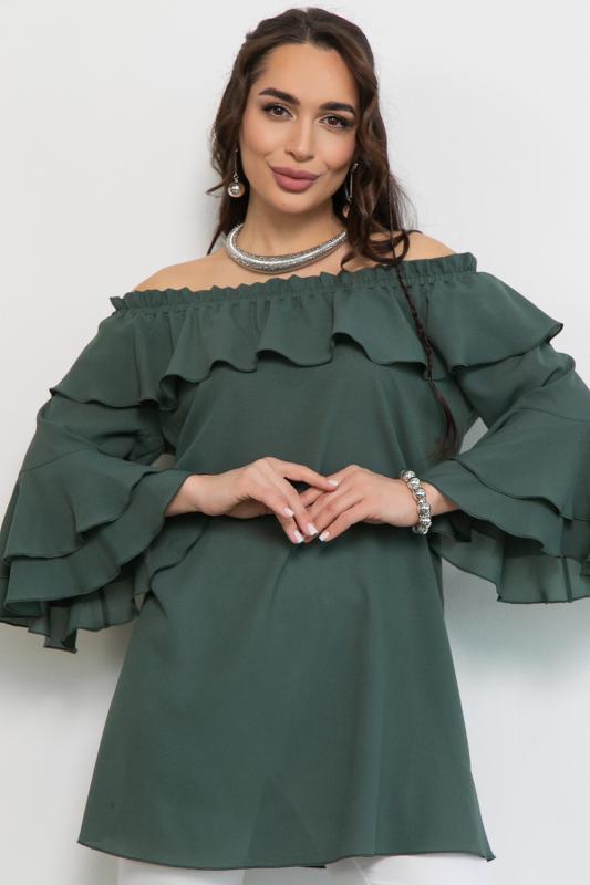 Туника “Амалия” – это идеальный выбор для стильных женщин. Простая, базовая и одновременно нарядная, она перенесет вас в атмосферу легкости и свободы. её нежное прикосновение к коже превратит любой день в праздник моды и стиля. Кофточка с открытыми плечами идеально подходит как для повседневного образа, так и для вечернего. Благодаря длинным рукавам и открытым плечам, эта блуза выгодно подчеркнет вашу женственность, а рюши добавят объемности и создаст прекрасный силуэт. Позвольте себе выглядеть строго без потери женственности!