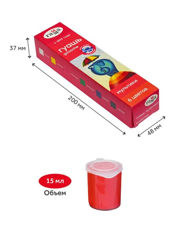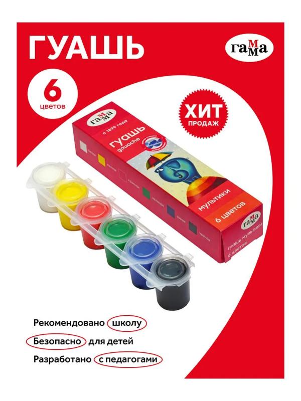 В наборе 6 цветов, объем одной баночки – 15 мл. гуашевые детские краски «мультики» отличаются высокой плотностью и укрывистостью, легко наносятся на бумагу или картон и быстро высыхают. После высыхания рисунок приобретает матово-бархатистую поверхность. Яркие цвета прекрасно смешиваются между собой, позволяя получать новые красивые и чистые оттенки. Краски ««гамма»» изготовлены на основе натуральных компонентов и высококачественных пигментов. Краски для рисования легко смываются с рук. Гуашь «мультики» фасуется в новую удобную упаковку – блок-тару, баночки спаяны между собой и находятся в одной «связке», что позволяет ребенку хранить краски разных цветов вместе, препятствуя их случайному опрокидыванию с рабочей поверхности, а также потере крышечек. Хорошая герметичность баночек: они удобно, легко открываются и закрываются без усилий.